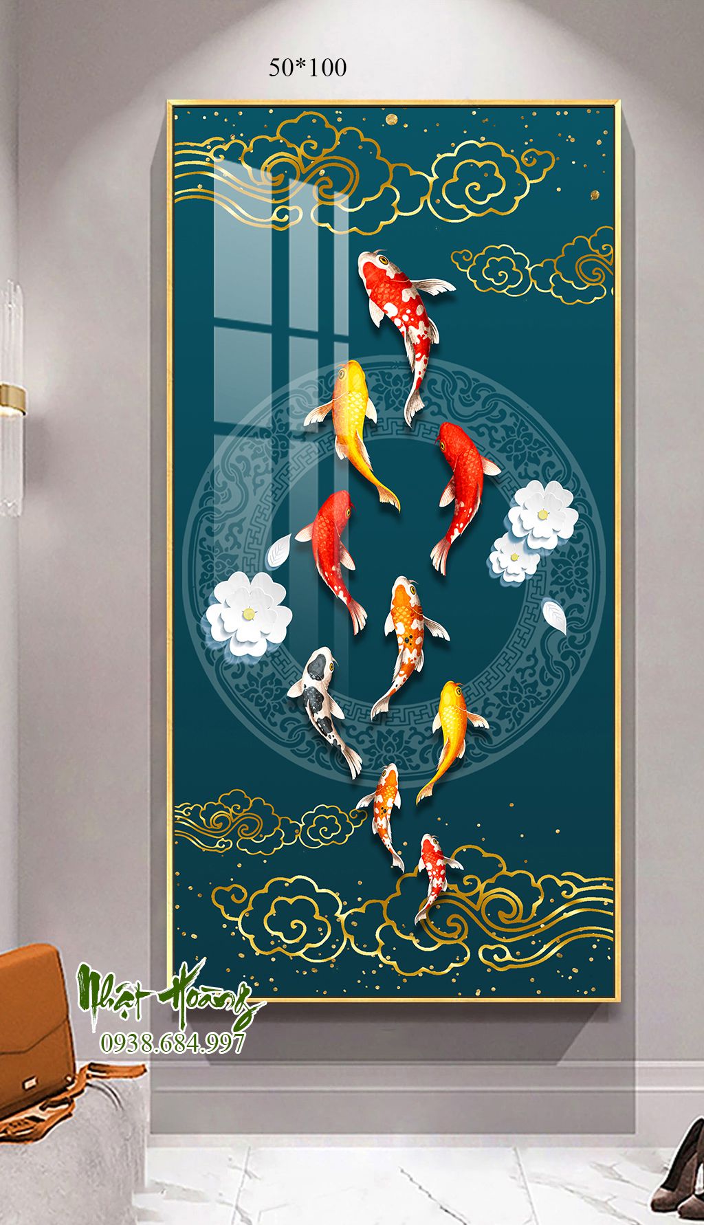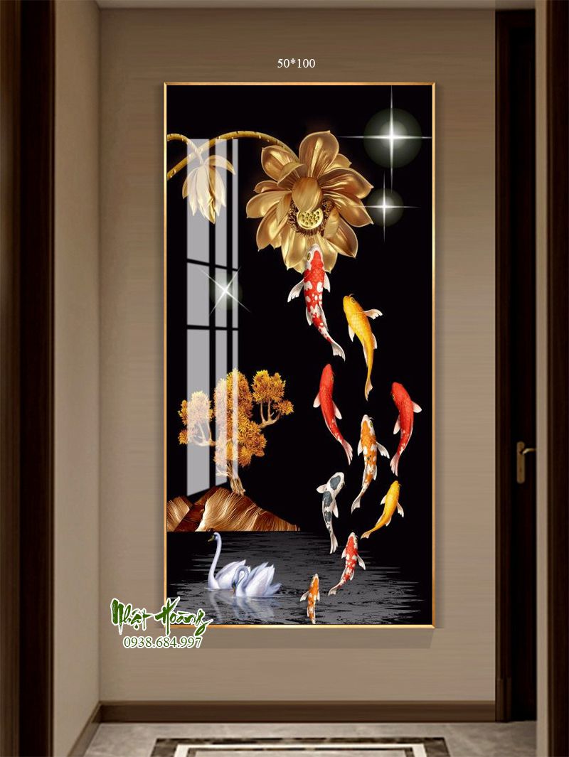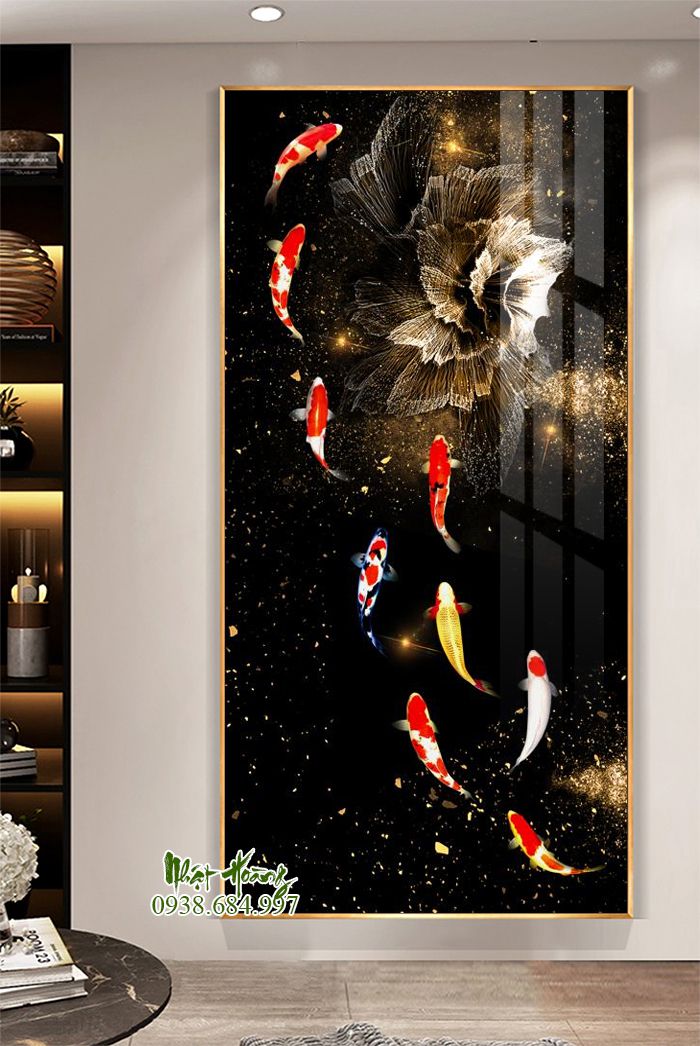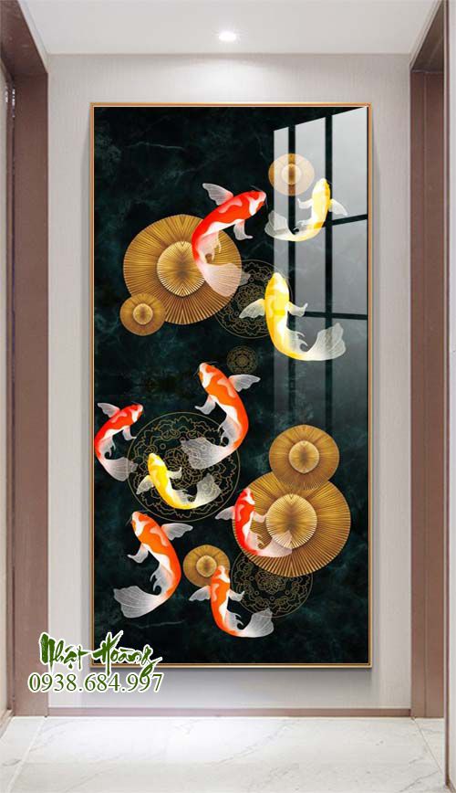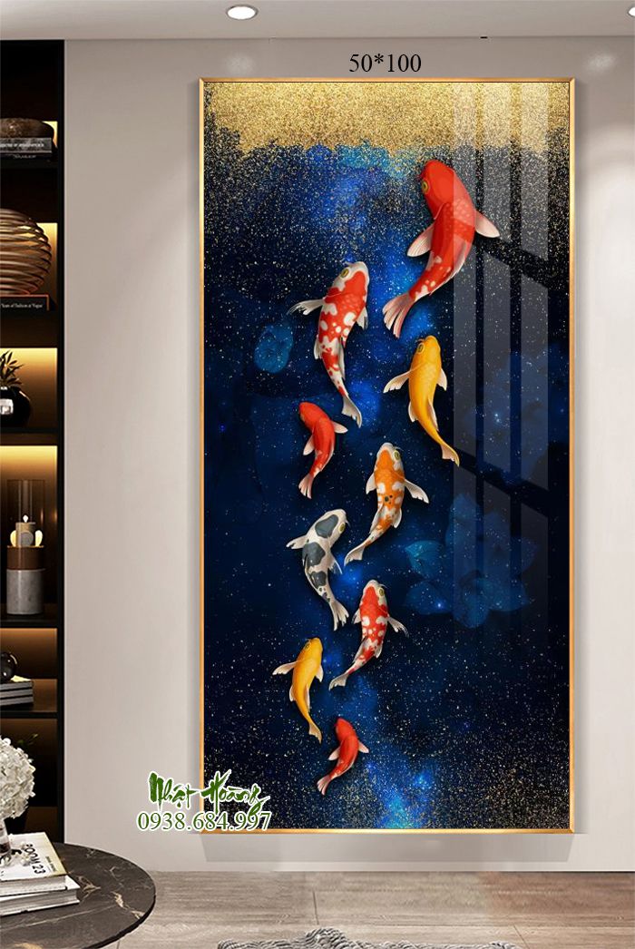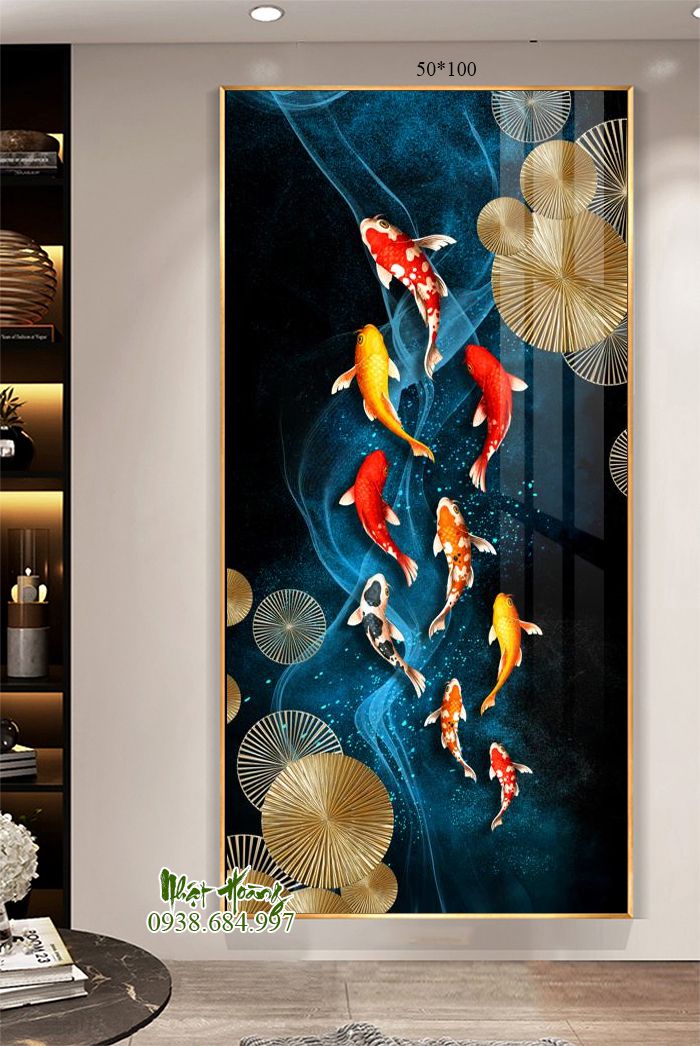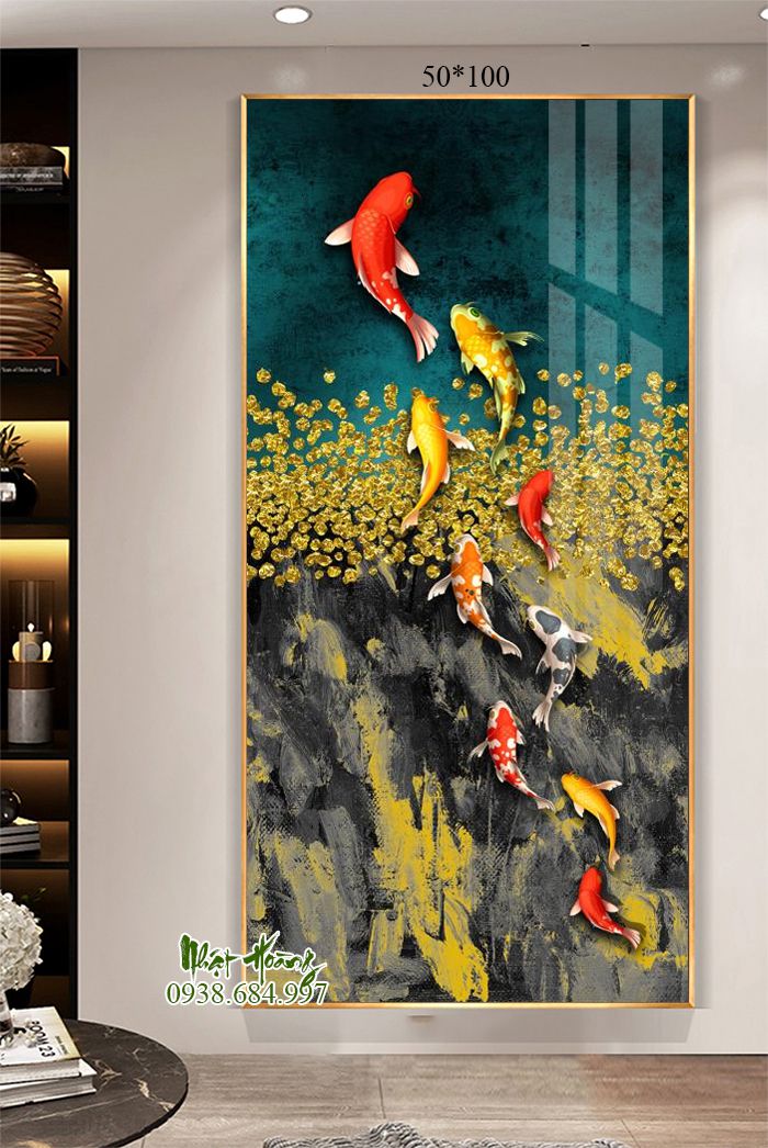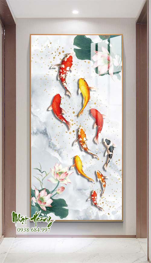 Tổng hợp 11 mẫu tranh Cửu ngư quần hội treo tường, sản phẩm bóng đẹp, trọng lượng nhẹ, dễ dàng treo tường. Kích thước đặt theo yêu cầu